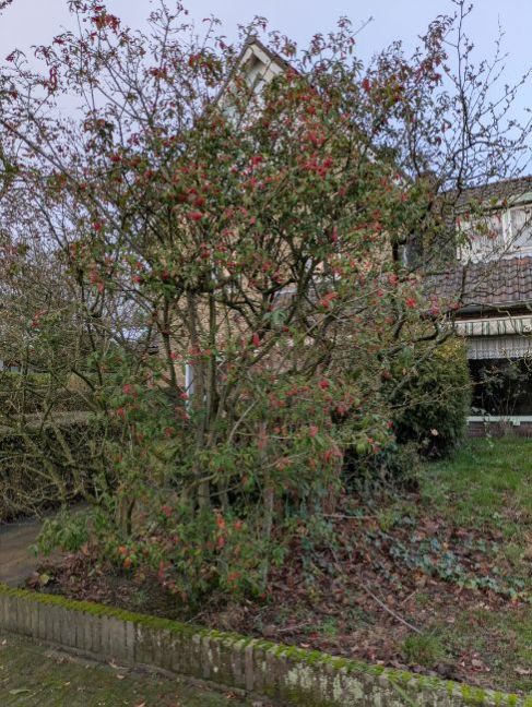 Dank allemaal, ik zal vanmiddag nog even scherpere foto's maken en uploaden. Ik ben er vrij zeker van dat het geen kardinaalsmuts is. De photinia lijkt me een goede kandidaat, de blad verkleuring past daar ook wel bij. Denk overigens dat de foto's automatisch in lagere kwaliteit geüpload worden want op m'n nieuwe Pixel telefoon zijn ze super scherp. 😅