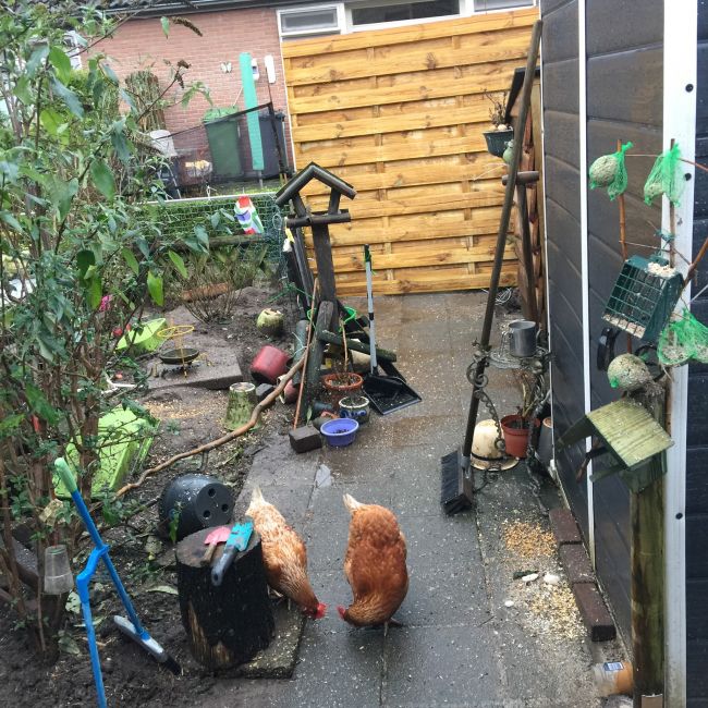Aangezien in mijn tuin niets meer te halen valt … Mogen ze bij de buren grasduinen… omdat drie tuinen winterklaar zijn en kunnen ze daar naar hartenlust rondscharrelen.
