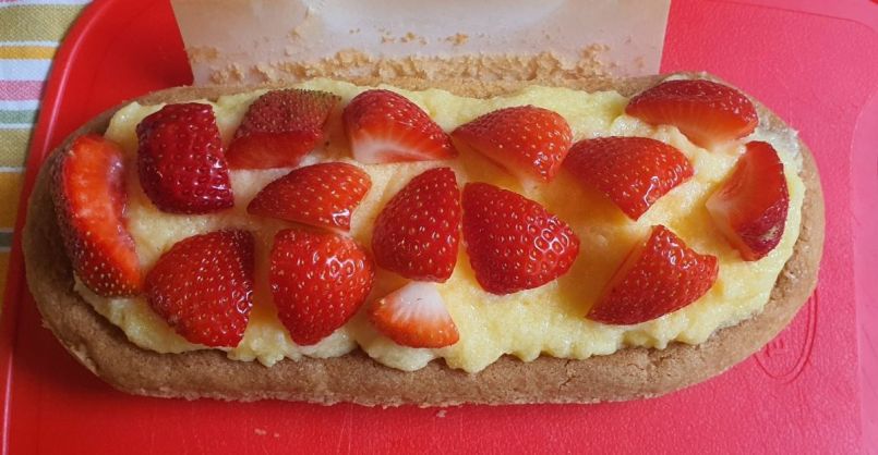 De aardbeienoogst blijft maar doorgaan, dus vandaag nog maar een heerlijke aardbeienslof ervan gemaakt.