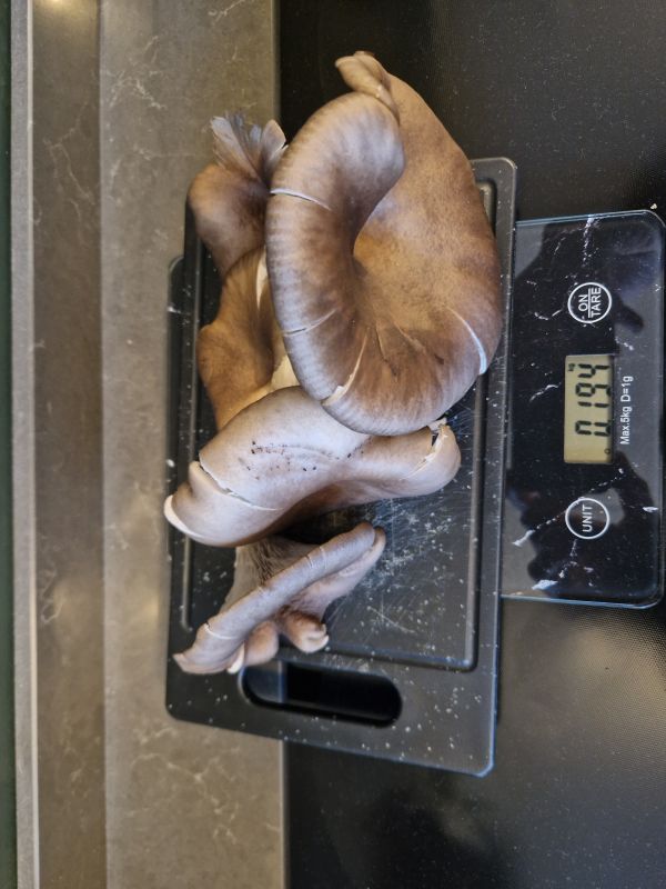 Ik heb afgelopen jaar oesterzwammen gekweekt in een emmertje met koffiedik gemengd met stro. Deze eerst paar keer doordrenkt met kokend water uit de waterkoker. Er groeide ook wat groene schimmel in maar al gauw kreeg de heerlijk naar anijs ruikende pleurotis de overhand. Mycelium had ik gekocht (zit nog steeds in de koelkast), maar wilde het ook wel eens zelf proberen: Ik heb met een schoon mes het binnenste van de stammetjes van supermarkt oesterzwammen geprepareerd en dit tussen vochtige gesteriliseerde kartonsnippers gedaan.. klein bakje. Toen dit helemaal wit werd, dit dus gebruikt om de koffiedik/stro-mengsel te enten. Het resultaat: