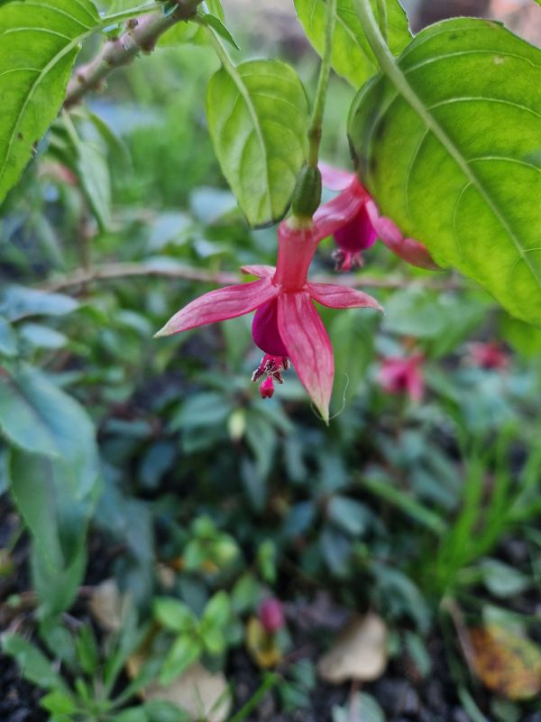 Sommige fuchsias bloeien hier nog steeds, terwijl anderen het uberhaupt moeilijk hebben door koude. Dit jaar een stuk of 15 verschillende "winterharde" cultivars besteld van een fuchsia kweker (omdat ze me niet konden vertellen welke bes ook lekker was om te eten, ondanks dat ze die vraag blijkbaar zo vaak krijgen. Proef dan eens voor je klanten, toch? Haha) uiteindelijk lijkt maar 2 echt lekker, maar ik moet volgend jaar weer proberen.