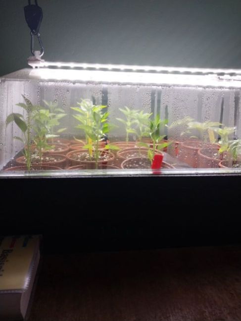 Hoi! Wij zijn halverwege januari begonnen met onze pepers in de propogator voor de eerste keer! Nu groeien ze lekker goed, maar ik ben bang dat ze over een paar weken te hoog zijn en dus niet meer passen. Ik heb naar verhogingen gekeken, maar die zijn erg duur. Daarbij is het volgens mij ook niet echt standaart om dat te doen? Wij hebben een redelijk koud huis, dus ik ben bang dat we niet zomaar de bak eraf kunnen halen in de lente. Iemand goede tips? Bijgevoegd een foto met de situatie nu.