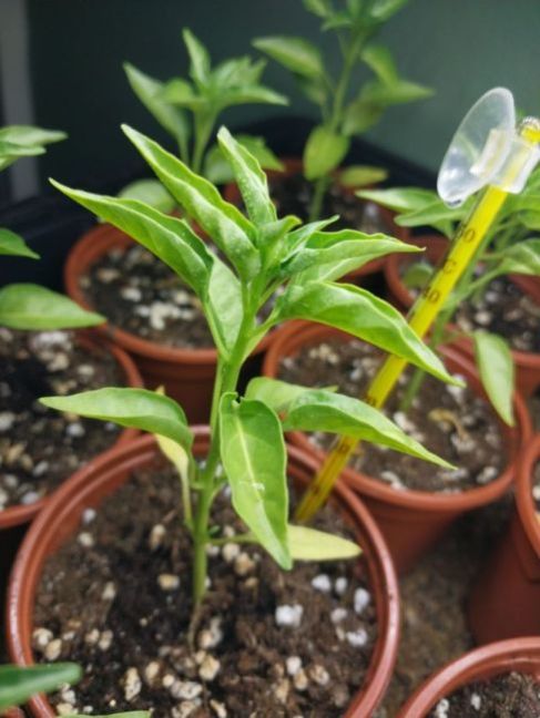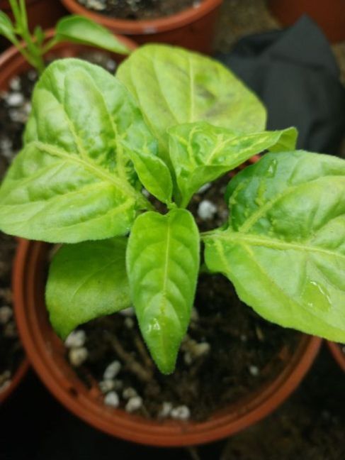 Hoi! Nadat mijn vraag over de propagator gisteren zo goed is beantwoord, zie ik vandaag dat mijn pepers wat onder de leden hebben! Ze zien er verder gezond uit, het lijken geen beestjes te zijn, maar ze hebben er allemaal in mindere en meerdere mate last van. We hebben ze enige weken geleden in een mix van potgrond, zaai en stekgrond en perliet gezet. Qua voeding moeten ze naar mijn idee dan goed zitten? Hier een foto van bovenkant blad: onderkant blad: foto van de andere soort peper het ook op zit: en het zit ook op de stam. Ik zie geen luizen of luizenpoepjes. Iemand enig idee wat dit is? We hebben madam jeannet en piri piri pepers staan. Alvast bedankt!