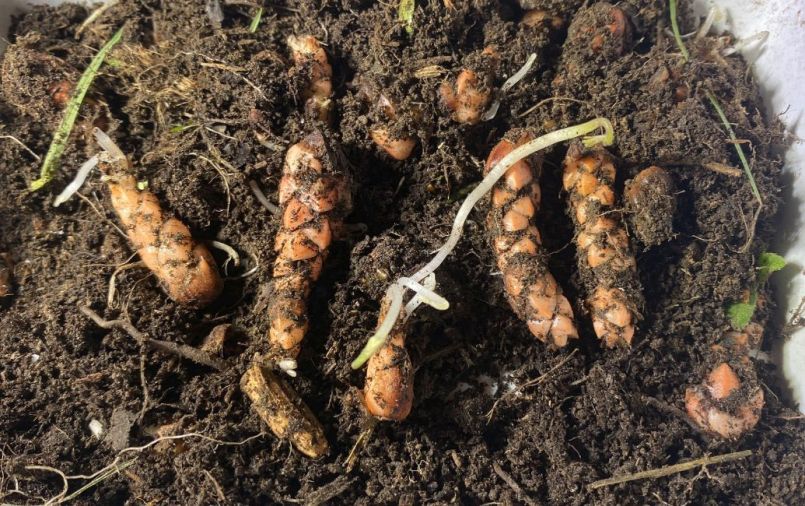 Dit seizoen wegens omstandigheden de look pas in de grond gestoken op 26 maart. Dus niks gedaan vorig jaar in oktober. Het pootgoed werd gekozen uit wat overbleef van de vorige oogst nadat 'de keuken' zich daar dus al 6 maanden ging in gerieven. Het waren dus niet zeker niet grootste tenen die in de grond gingen. En toch is het een correcte oogst geworden. De oogst was wel een paar weken later dan andere jaren, maar dat schrijf ik ook voor een stuk toe aan het regenweer. Ik ga hetzelfde herhalen en ze pas begin maart in de grond steken. Op 18 maart gingen ook 25 olifantenknoflooktenen in de grond. De oogst is een verdrievoudiging in volume, aantallen heb ik niet geteld, heel veel kleintjes er bij gekomen. Ik denk dat ik die kleintjes in potjes ga steken tot in pakweg maart. De grote tenen zullen de komende weken de grond in gaan.