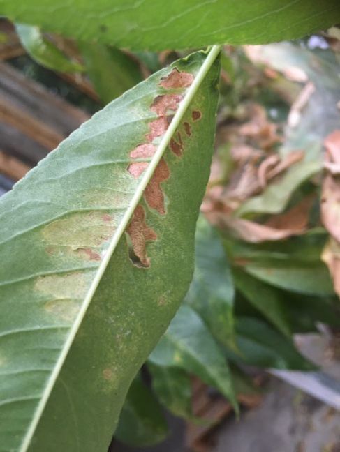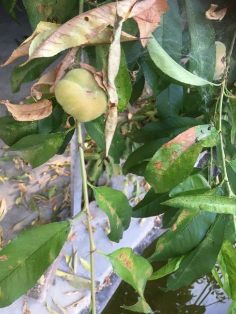 3. Mijn perzik in de kas werd eerst langzaam ziek en nu gaat het steeds sneller. Bruine vlekken op het blad en veel dode bladeren. Heeft iemand een idee wat het is?