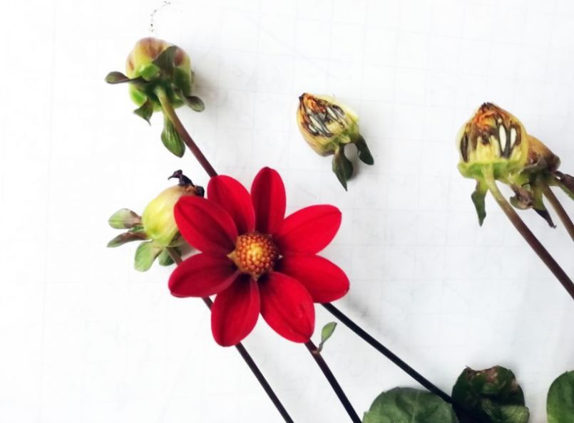 kennis heeft dahlias waarvan sommige knoppen niet uitkomen maar verrotten lijkt het helft van de plant doet het goed oorzaak iemand?