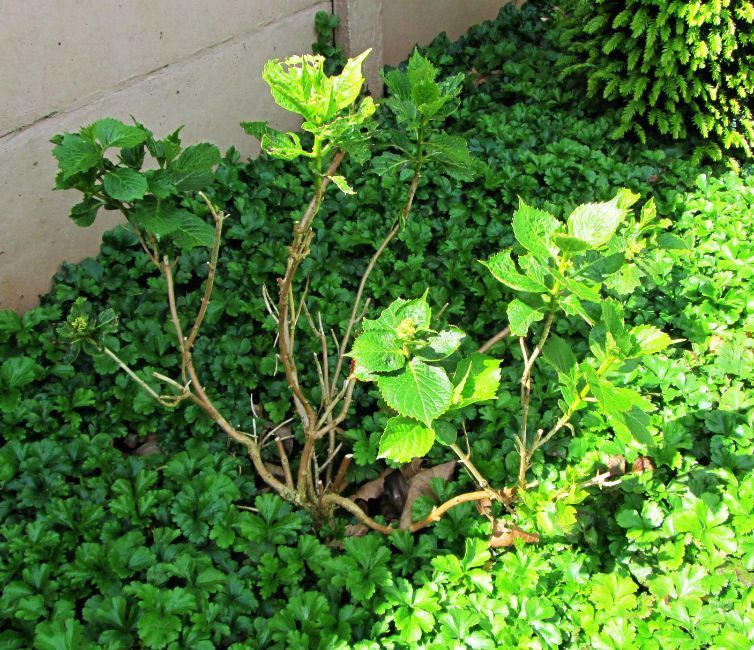 Het is een hydrangea serata blue bird Tot hoeveel boven de grond kan je snoeien om terug een volle plant te hebben ?