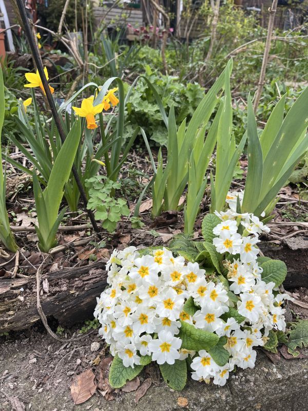 Ohhhhh, ik ❤️ sleutelbloemen. Echt zo mooi deze hoge zachtgele. Hier verdwijnen helaas die mooie hoge. Ik heb wel een groot wit monster. Je weet wel zo'n platje uit de supermarkt. Dat is nu een mega grote pol geworden. Op de foto lijkt het mee te vallen, en hij is inmiddels al weer wat uitgebloeid. Maar ik wist niet dat het zulke pollen konden worden. Wat wel leuk is, is dat hij al maanden bloeit. Met de sneeuw bloeide hij ook al (haha, niet te zien met die schutkleur).