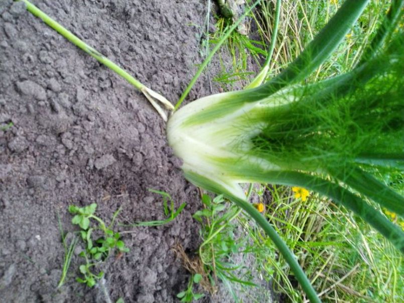 8. Dit is mijn inzending. De knolvenkel die ik 1 september ook gepost heb, heb ik vandaag geoogst. In 29 dagen enorm gegroeid tot wel 811 gram. (gezaaid 23 juni). Je kunt aan de foto zien dat er al enige rot optreedt. Een ander exemplaar is geheel verrot. Zaaien na de langste dag en oogsten eind september is zo gek nog niet. Geen enkele is bij mij doorgeschoten. Ik heb nog ongeveer 6 flinke venkels staan. Een die bijna niet onderdoet voor deze.