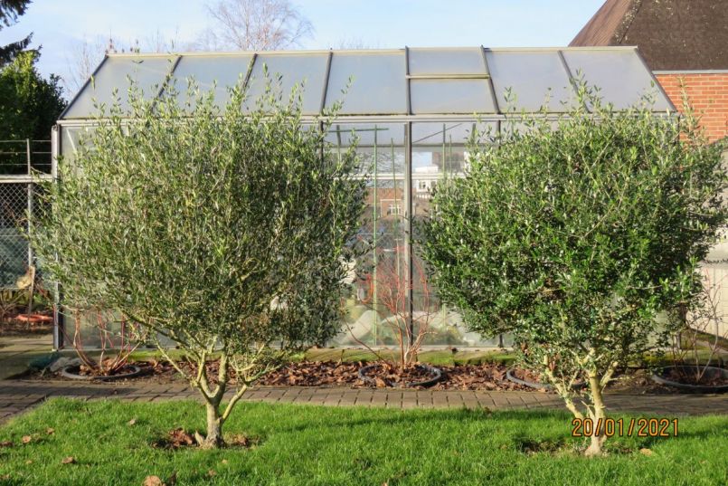 @Tuinmanaad Jouw bedoelingen zijn goed maar de boompjes geven duidelijk aan dat ze gedurende de winter verkeerd verzorgd worden. Ook olijvenboompjes hebben een winterrust nodig en die krijgen ze nu niet. Er zijn immers als ze in maart buiten gezet worden alweer lange nieuwe scheuten gegroeid. Dit duidt op een combinatie van een te donkere staanplaats en een te hoge omgevingstemperatuur terwijl een langdurig te natte grond de oorzaak kan zijn van het bladverlies. Zet de boompjes eens op een lichtere en koelere plaats en geef in de winterperiode pas water als de grond echt dreigt uit te drogen. Zolang ze klein zijn kunnen olijvenboompjes best vorstgevoelig zijn maar naarmate ze ouder/groter worden kunnen ze best wat vorst verdragen. Van belang is dan wel dat de kuipen (of grotere potten) rondom beschermd worden met wat vliesdoek of noppenfolie zodat de grond in de kuipen niet bevriest. Ik praat een beetje uit ervaring. Ongeveer 18 jaar geleden kocht ik 2 ongeveer 25 cm hoge olijvenboompjes in pot. De eerste jaren werden ze 's winters doorgehouden op een koude maar vorstvrije en lichte plaats. Later bleven ze ook 's winters tijdens lichte vorst in kuipen buiten staan en werden ze alleen tijdens matige vorst binnen gezet. Nu staan ze alweer een jaar of 4 in de vollegrond en zou ik ze niet eens meer binnen kunnen zetten. Vorstbescherming hebben ze zolang ze in de vollegrond staan nooit gehad maar het heeft de laatste jaren dan ook niet meer streng gevroren. Zou dat nog eens gebeuren dan pak ik ze natuurlijk wel in met vliesdoek of noppenfolie. - Alles over Dahlia's