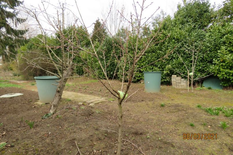 Vandaag erwten en sjalotten gepoot. Verder nog een blauwe bes geplant. Normaal poot ik erwten pas in de eerste helft van maart. Omdat er volgens weeronline de komende 14 dagen geen regen van betekenis verwacht wordt, en de grond momenteel lekker vochtig en relatief warm is, heb ik ze al vandaag in de grond gezet. Ze staan in 2 sleuven aan weerskanten van tuingaas zodat ze aan beide zijden langs het gaas omhoog kunnen klimmen. Na het dichttrekken van de sleuven moest er nog een frame overheen. Zo'n frame van een foliekas heb ik al een paar jaar gemonteerd en al in mijn tuin staan. Voor de plantjes boven de grond komen moet daar weer een tuinnet overheen om bandieten als houtduiven en mussen te weren. Onder 2 van de 3 'tentframes' (linksachter) had ik vanmorgen al sjalotten gezet. Onder het derde frame komt t.z.t. de winterprei te staan. Omdat preivlieg en preimineervlieg ook sjalotten aantast moet het geheel nog met insectengaas afgeschermd worden al duurt het nog wel even voor de beestjes actief worden. Verder nog een blauwe bes in kuip gezet die al een tijd in een te kleine pot stond te wachten. 90 liter turf/tuingrond/zand/compost moest onder elkaar gemengd worden maar als je de beschikking hebt over de betonmolen van de buurman is zoiets gelukkig een fluitje van een cent. Als finishing touch nog een mulchlaag van gehakselde dennentak rond de plant aangebracht.- Wat heb je vandaag (of gisteren) in de tuin gedaan? 2021