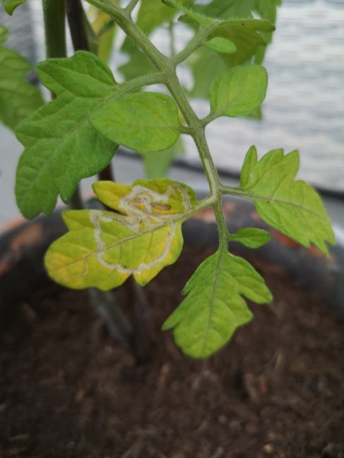 Voor het eerst dit jaar probeer ik een tomatenplant in leven te houden maar het blad van mijn tomatenplant ziet er niet goed uit... Wat zou dit kunnen zijn? En wat kan ik ertegen doen?