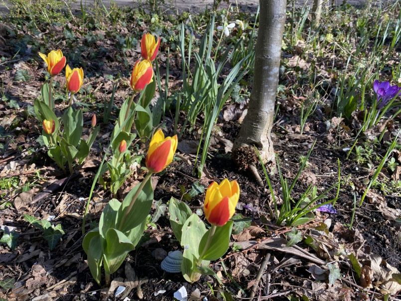 Ah, bij ons bloeien de botanische tulpjes al een paar weken, die zijn denk ik wat eerder. Deze foto maakte ik 19 maart. Verder zie je alles groen worden op de tuin, zo fijn! De komende mooie, warme dagen gaan zeker helpen!