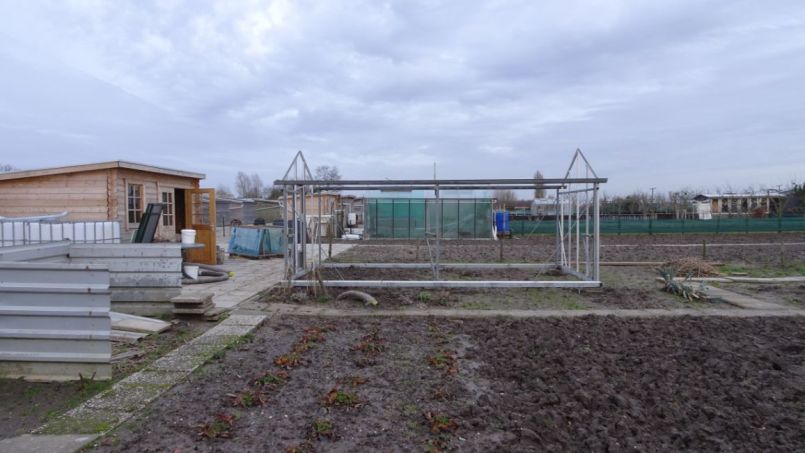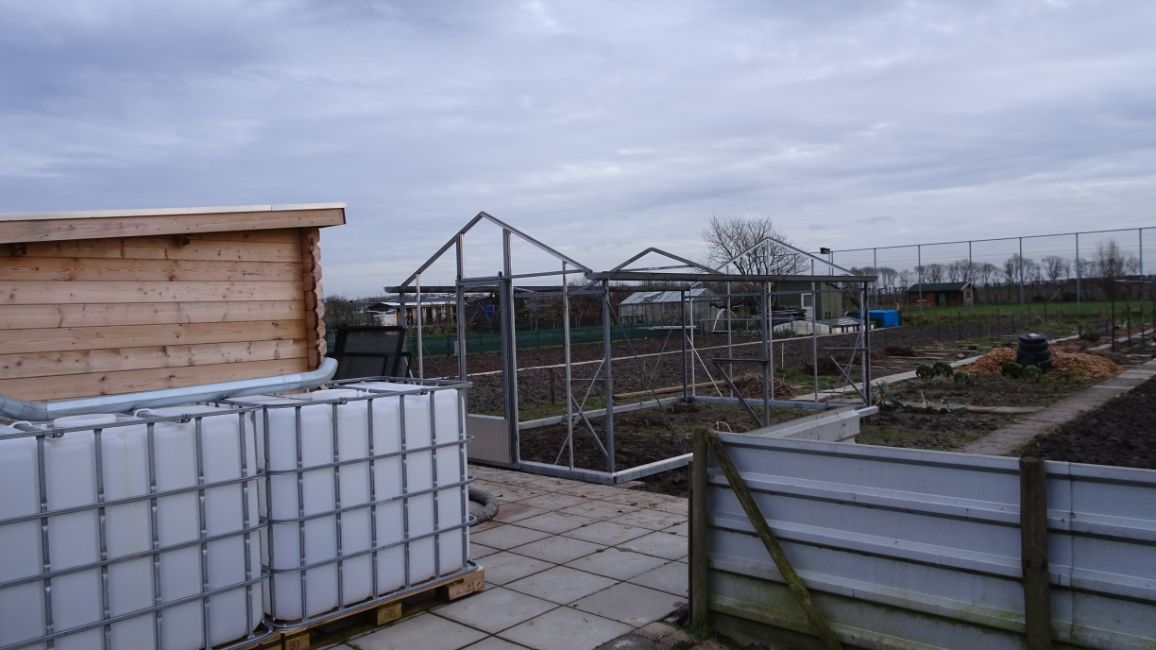 1. Rondom en in de nieuwe kas bezig. Nieuwe foto volgt nog. 5,80 mtr x 3,30 mtr, 2 dakramen. Wat een werk er ineens bij zeg om alles in orde te maken. Aan allerlei andere werkzaamheden kom ik niet toe, maar goed wel lekker bezig. Ook nog 1 M² snippers aangevoerd, compostvat gekeerd.