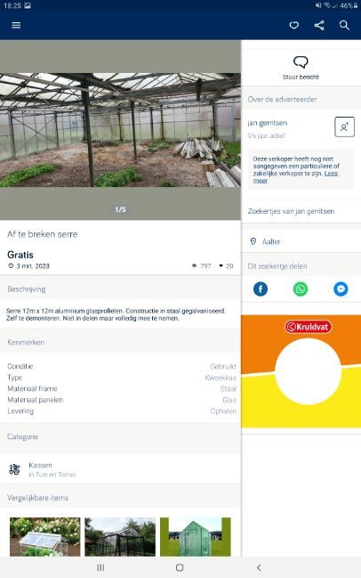 Op 2de Hands zag ik vandaag een tuinkas, hier in Aalter! Gratis nog wel. 12 m bij 12 m. Zelf afbreken en vervoeren. Liefhebbers kijken maar even op 2de Hands.be.