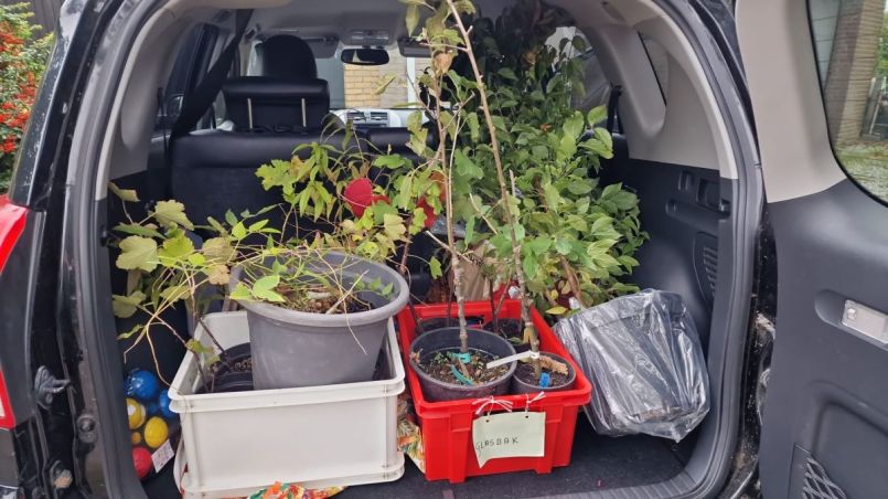 10. Ik heb vandaag 6 pawpaw-boompjes van ca 4 jaar oud zo diep mogelijk uitgestoken. Die kan ik voor de liefhebber(s) meenemen a.s. zaterdag. Ze zijn nu rond de 50 a 60 cm groot. Advies is om ze met 2 samen in een diep plantgat met veel organisch materiaal te planten...3 mag ook. Dat geeft veel grotere kansen op goede bestuiving. Wortels niet proberen te spreiden of los te maken...want daarmee is er veel kans dat je ze de nek omdraait, Ze zijn met blote wortel en zitten in een ruime zak...uiteraard de wortels vochtig houden en de boompjes zo snel mogelijk in de grond zetten en bij het planten gerust 10 a 20 liter water geven...(er hangt wel wat grond aan, ik heb ze zo veel mogelijk met rust gelaten om zo weinig mogelijk te beschadigen). Pawpaws laten zich moeilijk verplanten. Ik geef geen garantie dat ze terug aanslaan, maar de kansen zijn heel goed aangezien de boompjes in bijna winterrust gaan en ik heb ze zodanig opgekweekt dat er geen heel lange penwortel is, maar ook een aantal stevige zijwaartse wortels. Sinds 2012 heb ik me intensief bezig gehouden met opkweken van pawpaw. De wereld afgeschuimd om enkele zaden te vinden (veel geld, zaden waren verdroogd en bij pawpaw betekent dat 0% kans op kiemen). Etr was toen heel weinig informatie over en wat er was klopte vaak voor geen meter. Dus ik heb heel wat moeten proberen...maar in de loop der jaren heb ik zeker een 150 planten opgekweekt en grotendeels weggegeven. In mijn moestuin aan huis staan naast 1 gekochte boom die al een paar jaar droeg (maar niet veel) nog een 8-tal bomen die nu na een jaar of 8 a 10 voor het eerst droegen en ook nog heel veel. Helaas ben ik afgelopen weekend echt beroerd geweest door het eten van pawpaw (door de jaren altijd wel eens een enkele gegeten, de smaak is echt wel lekker) ...zo erg dat ze me intussen tegenstaan en ik ze niet meer wil. De grote dragende bomen zijn niet meer te verplanten met succes....deze kleine wel en omdat ze moeilijk te krijgen zijn en best duur...wil ik ze liever aan de liefhebber(s) geven dan zo maar verhakselen.... Laat even weten als je belangstelling hebt.