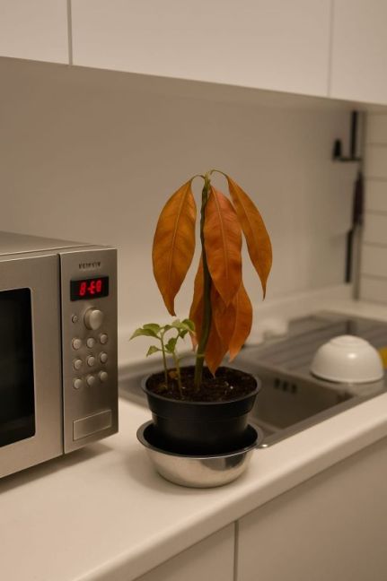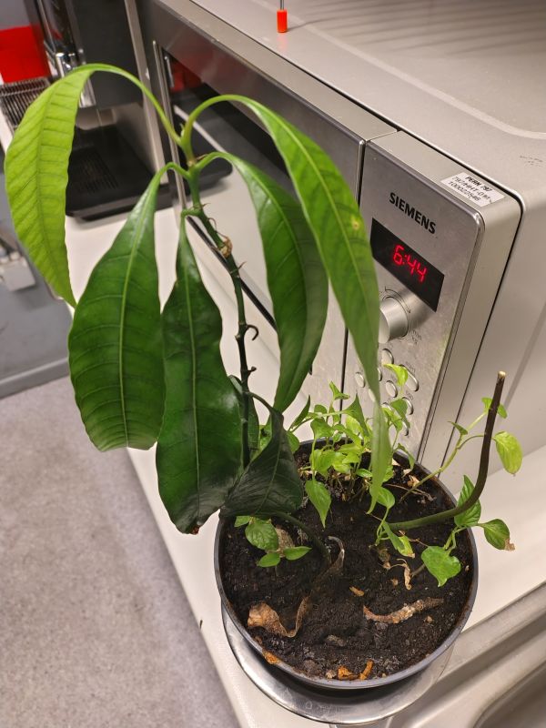Mango plant bijna een jaar oud . Heeft nog niks van daglicht gezien . 24/24, 365 dagen per jaar kunstmatige licht (LED TL lampen en uv licht van vliegenhanger op minder dan meter) Temperatuur gans het jaar het zelfde , zelf eerder kouder in zomer dan in de winter . Deze zomer verloor hij ook bladeren en heeft 1 van de 2 planten het begeven. Ik dacht aan luchtvochtigheid te laag door koeling . Plant begon er terug door te komen en bladeren waren mooie donker groen. Pepers/paprika plantjes waren wel bleek (voedsel te kort of door licht?) . Sta dus wel een klein jaar in zelfde grond zonder bemesting . En andere zaadjes zijn er veel later bij geplaatst. Zondag plant bespoten met verdunde zeewierextract en na 24 uur zijn bladeren bruin. Iemand idee van oorzaak? Verbrand door bespuiten en uv licht ? Mango en zeewierextract dat niet samen gaan Heb het de laatste weken thuis ook gebruikt bij planten in huis en daar zeker er na geen bruin te zien aan de planten.