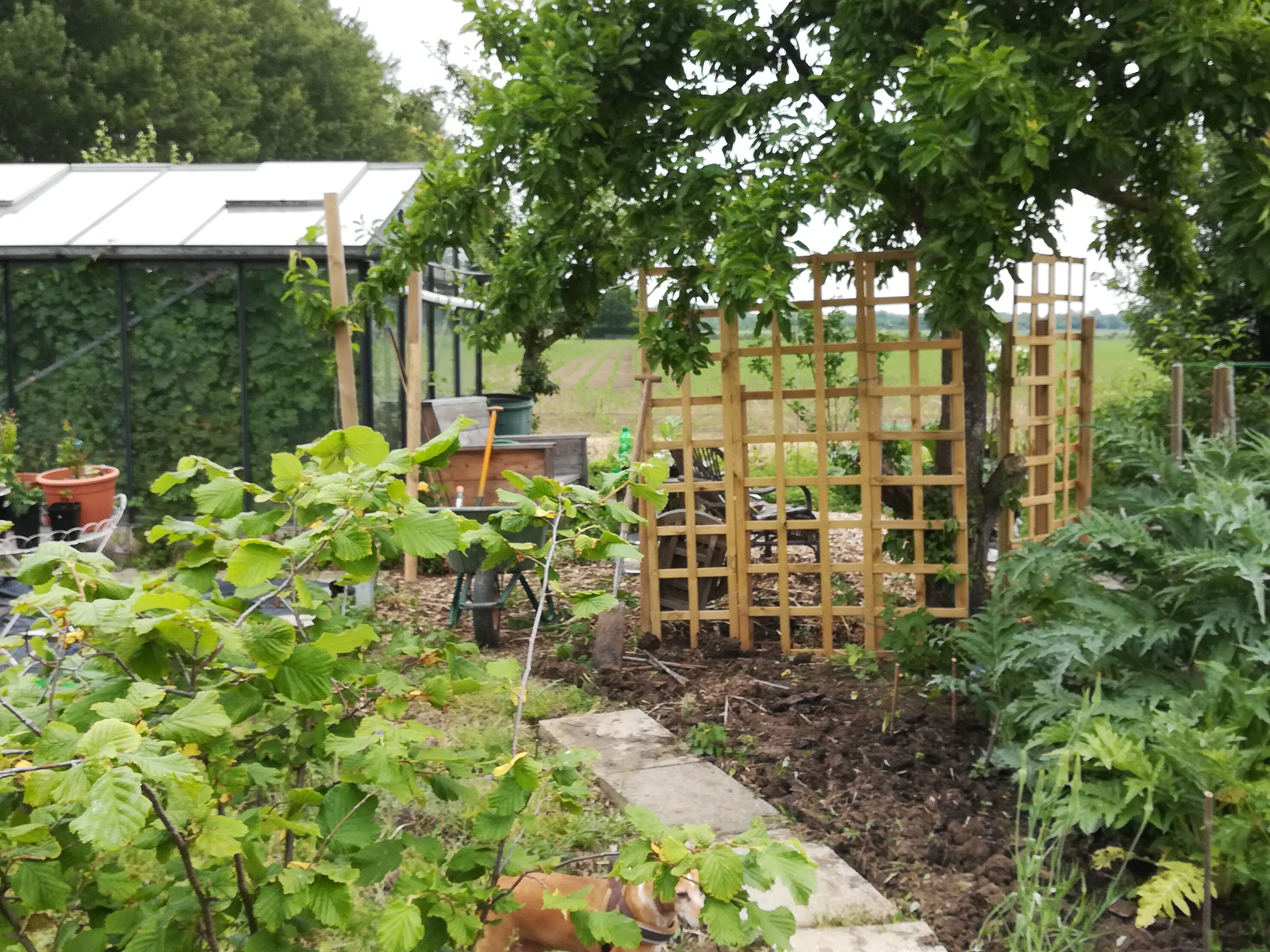 Ik ben nieuw op dit forum en ik hoop dat ik mijn welkom en tegelijk ook vraag, op de goede topic heb gezet. Ik heb een stukje grond, ong 375 m2 bij een tuinvereniging, op rivierklei. Behalve kweepeer, mirabel, kwets, hazelnoot, morel, notarisappel, vijg, opalpruim, verschillende rozen, kruiden, rabarber, ook gras wat opeens behoorlijk oprukt. Dit tot groot ongenoegen van het Bestuur van de tuinclub ...... Nu wil ik nu eigenlijk al beginnen met het verminderen van het gras en ik hink op 2 gedachten. Of: met de schop omploegen, maar ik heb altijd begrepen dat je dan het bodemleven flink verstoord, of: op het gras karton daarbovenop aarde, stro, mulch. ook zie ik bij collega tuinders worteldoek, jaar dan lijkt me de optie van karton toch wat vriendelijker. Ik weet wel dat het Bestuur niet blij is met mijn gras, ze vinden het teveel. Dus ik moet iets van actie ondernemen. Om structuur in de tuin aan te brengen wilde ik vakken maken met randen van wilgentakken. Nu heb ik dus 2 vragen: Welke van de opties kan ik nu mee beginnen om het gras te lijf te gaan? En; wanneer ik vakken heb gemaakt met wilgentakken, vul ik deze vakken met tuinaarde en vermeng dat met mijn kleigrond of tuinier gelijk op de tuingrond?? Bijgaand 2 foto's van het wilde gras. Vast hartelijk dank!