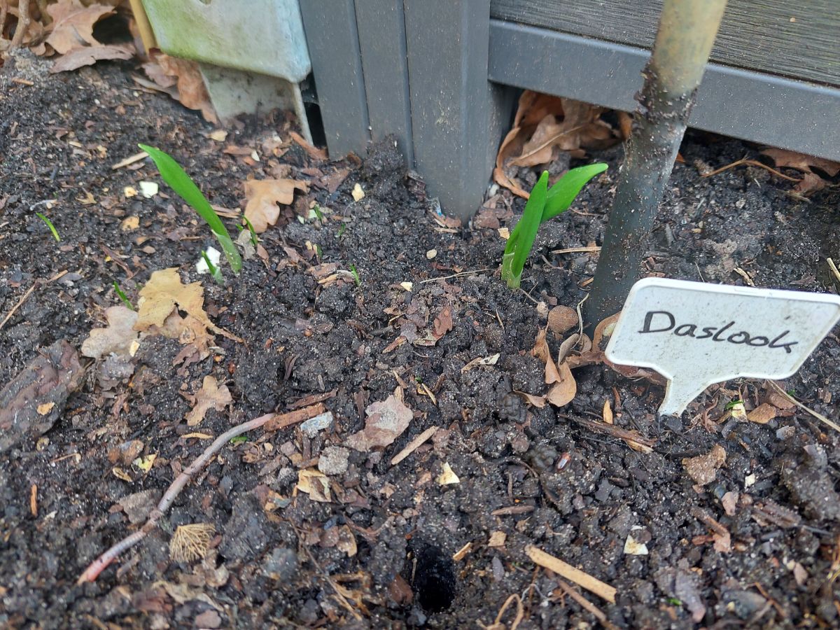 Direct even naar buiten gekeken en ik zie hier zelfs al een stukje groen bij de rabarberneuzen.