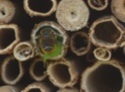 2. Eindelijk ook weer een berichtje van mij... Normaalgesproken zie ik alles in de tuin ontstaan en vergaan , maar dit jaar kwam het er door omstandigheden minder van. Vandaar dat ik ook wat minder op het forum te vinden was. Evengoed is mijn tuintje inmiddels wel "geland", en gebeurt er genoeg, ook als ik er minder bij ben. Dat zal hier op het forum ook het geval zijn In het begin van het jaar viel me op dat ik bijna geen wormen tegenkwam. Dat is echt een verschil met voorgaande jaren. Vooral vorig jaar was er veel uitbundige groei en bloei, en ik denk dat dat veel gevraagd heeft van de grond. Er gaat nu zoveel mogelijk in de compostbak, om daar straks hopelijk weer een boel uit te kunnen halen. Weer luis in de vlier, het derde jaar op rij al, en ik heb besloten hem straks helemaal terug te snoeien, hopelijk heeft de jonge versie er net als in het begin minder last van. Ik had een mini struikje kruisbes, maar o, wat waren die lekker Ook lekker veel frambozen dit jaar. De kiwibes (derde jaar nu) zag er heel veelbelovend uit met veel bloemen, maar hij heeft toch de meeste laten vallen. Een paar foto's: Die wolken van oregano trekken lekker veel bijenen hommels Er is er nog een die het hier wel naar haar zin heeft... Echinacea De witte salie is mooi de winter doorgekomen. Eigenlijk had ik ze toen eind mei al kunnen drogen, want inmiddels zijn ze niet meer zo vol. De oude verhoute salie is niet meer. Hij heeft wel 12 jaar dienst gedaan, en nu ruimte gemaakt voor nieuwe jonge aanplant. Daarachter nog wat snijbiet, melde, incarnaatklaver en phacelia Teunisbloem blijft mooi: En nog een knop van de scabiosa: Gisteren was ik in de amsterdamse waterleidingduinen, en zag daar dit bijenhotel: Tot slot mijn bankje: Ben van plan hier weer wat vaker langs te komen