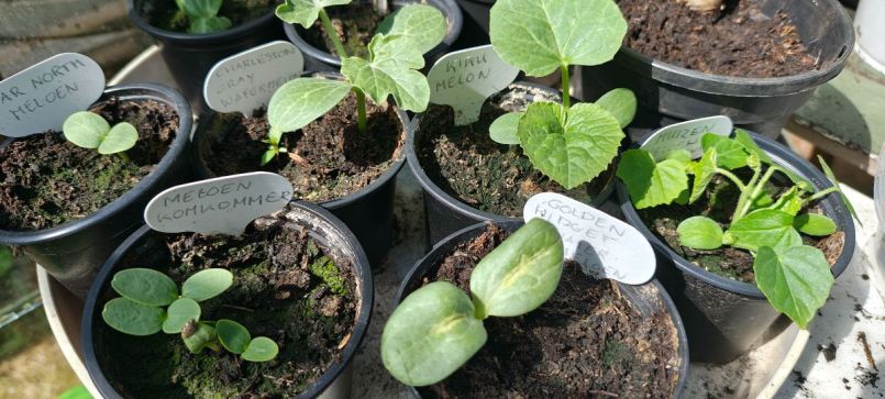 Hier gaat het ook nog niet zo hard. Ik heb ook de muizenmeloen en de meloenkomkommer op de foto hoewel die niet zo meloen zijn als meloenen, maar ach, het is één grote familie 😁
