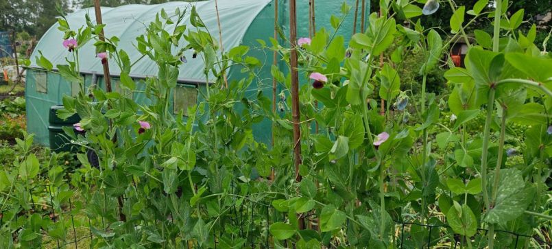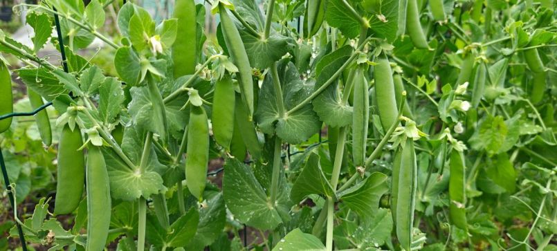 Bij mij gaan de sugar snaps, de doperwten en de peulen wel goed. Het enige waar ik zelf wat unheimisch vind, is de volgorde. Maar dat is mijn eigen schuld Normaal heb ik eerst de peultjes en dan pas de snaps en tenslotte de erwten. Maar dit jaar zijn de peulen hoog (zwitserse reuzen), de snaps en de doperwten laag ( Jessy snaps en Tristar doperwt). Alles is tegelijkertijd gezaaid, maar ja, die lage soorten zijn sneller. Dus ik eet nu al een paar keer sugar snaps, de doperwten staan al mooi bol maar de erwten moeten nog even groeien en de peulen staan pas nu in bloei. Raaaaar!