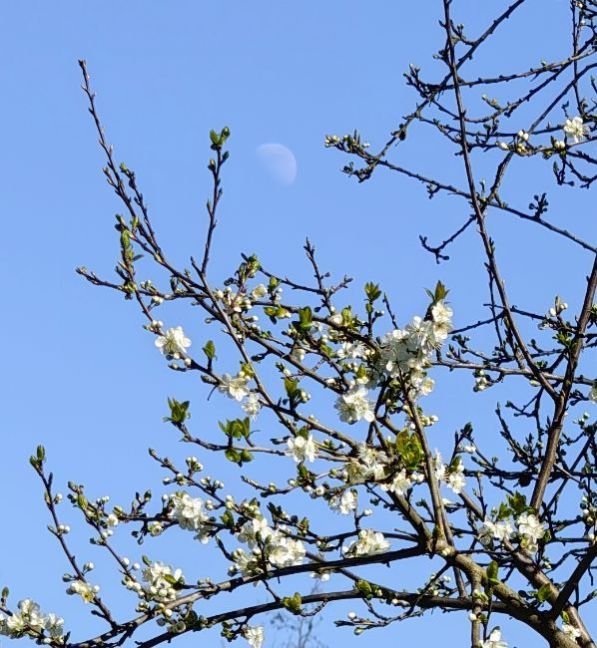Zit ik op de tuin ineens in een haiku 春もやや 気色ととのふ 月と梅 haru moya ya keshiki totonou tsuki to ume Barely Spring, a colorful complexion of the moon and a plum blossom (matsuo bashō)