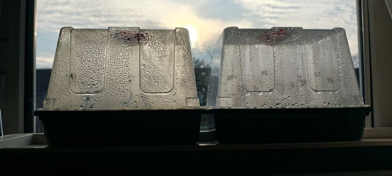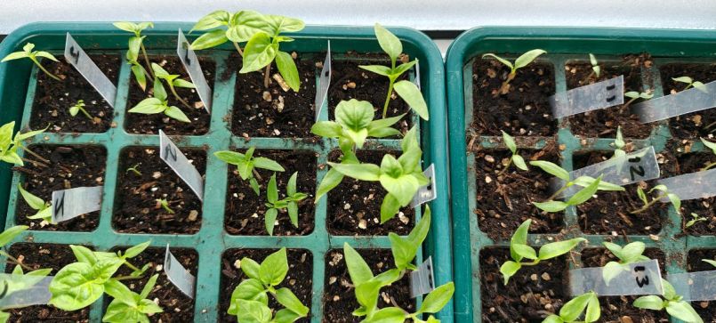 De eerste batch is gedeeltelijk al toe aan verpotten. Gaat voorspoedig. Batch twee staat ook geheel boven, maar zijn nog grotendeels in kiemblad fase. Batch drie (plus paprika en aubergine) staan sinds gisteren op het warmte- plankje. Deze worden nu bijgelicht met de Aldi ledstrips die ik vorig jaar gebruikte, maar ik heb inmiddels ook echte groeilampen gekocht. Witte, geen roze, want daar wil ik echt niet tegenaan kijken 😬.