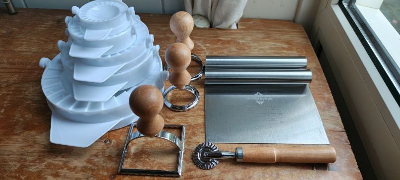 Zo! Was ik vanmiddag even verschrikkelijk aan het keukenprinsessen! Achter mij bakte een brood, rechts gingen er een paar kilo bramen en frambozen via de sappan richting de wijn van de toekomst en ondertussen knutselde ik met pasta uit diverse vormpjes. De halve maantjes gaan in de vriezer, de vrije strikjes en stripjes liggen te drogen en ik heb nog wat probeersels met vulling die ik zo weg ga werken, mjam. Vulling bestaat uit ui, spinazie, knoflook, feta en wat pardano, zwarte peper, paprika en nootmuskaat. Moet ook heel fijn zijn met snijbiet en NZ spinazie Recept voor het deeg: 200 gr durummeel, 200gr patentbloem, eetlepel olijfolie, halve theelepel zout en een uur deeg laten rusten. Mijn deeg was geweldig soepel. 😀 Edit: en vijf eieren. i.p.v. vier. Tssss, waarom vergeet ik het belangrijkste....