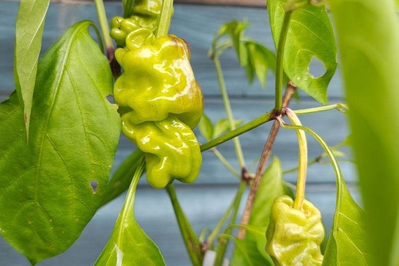 Nog wat spontane zaailingen van (gokje) wat uitgespuugde Habanada zaden. Gewoon buiten in oktober in een bakje met verwaarloosde gember. Ik ga er vanaf nu maar vanuit dat het kweken op bodemwarmte wel heel bevorderlijk is voor de ontkieming, maar niet noodzakelijk voor verse zaden 😁 Ik heb er dit jaar wel een hele serie favorieten bij gekregen. Grappig genoeg zijn die vooral heel mild, snackpepers dus. Habanada wil ik volgend jaar gewoon een heel veld van. Aji cachucha purple splotched ging regelmatig mee in de lunchbox, Aji delight ook en van Peachadew en Zebrange ben ik ook groot fan geworden. Heerlijke smaken en geweldige opbrengst. En weinig tot geen hitte. Ik ga dit jaar ook weer proberen wat planten te overwinteren. De Sugar rush peach van vorig jaar leeft nog steeds, de Mattapeño en de Scarlett variegated zijn dit jaar gezaaid zijn goede kandidaten.