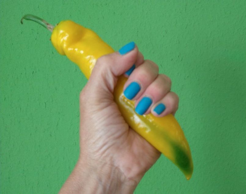 Bij mij zien de Zebranges er op dit moment gewoon nog groen uit. De eerste begint wat te verkleuren. Ik vind het net allemaal groene feestneuzen. Van de Habanadas word ik ook blij, zoveel hangt er in deze plant. Het kost me alleen heel veel moeite om ze te laten hangen tot ze rijp zijn