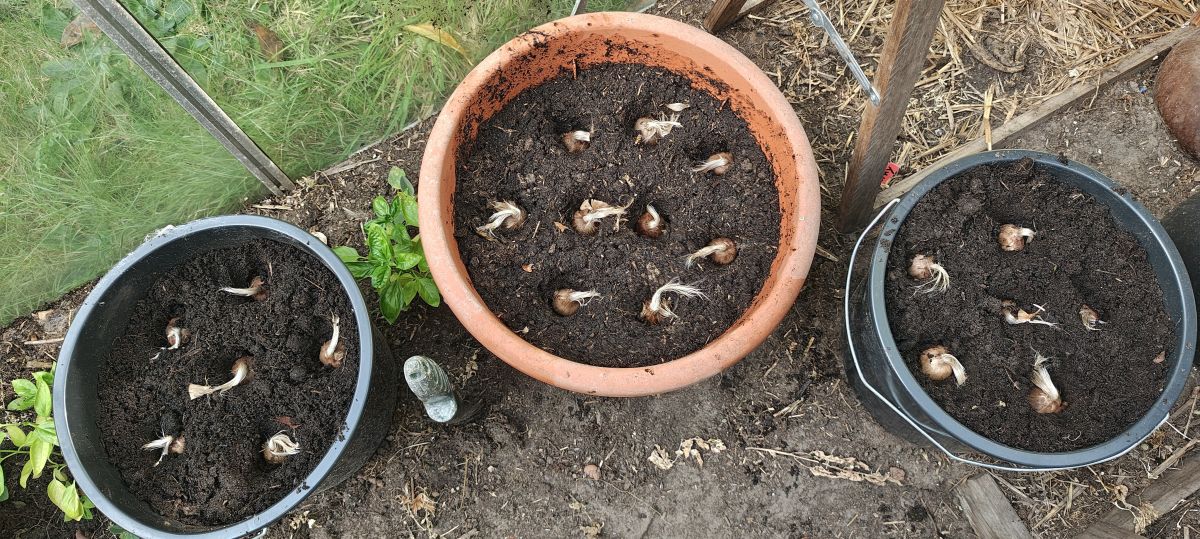 En schop dit topic omhoog! Want ik las dat het traditie is om in september mensen weer te attenderen op het poten, verplaatsen of aanschaffen van saffraanbollen. En dit jaar doe ik ook mee. Gisteren kreeg ik mijn saffraanbollen van Vreeken binnen en vandaag heb ik ze dus maar in potten en bakken gezet. Ze staan nu in de kas, maar daar is het op dit moment wel warm, maar minder zonnig, dus het kan zijn dat ik ze ga wisselen met de pepers voor het huis, die dan mogen narijpen in de kas.