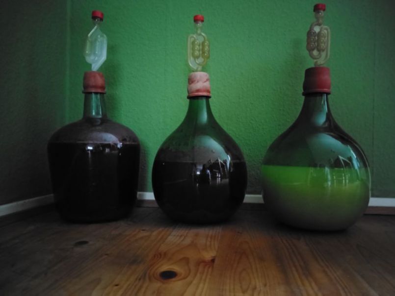 De flessen staan inmiddels gezellig in de hoek van de kamer te ploppen. De derde fles is vlierbloesemwater wat ook nog in de diepvries lag. Wat lafjes qua smaak, maar wel lekker qua geur, dus ik zie wel wat er uiteindelijk van komt. Als de geur blijft hangen, misschien nog wat opleuken met witte druivensap. Of rabarber!