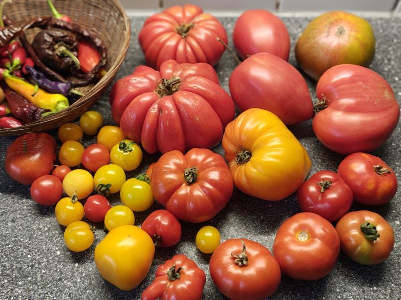 Het lijkt erop dat de phyto in mijn tunnelkas geen phyto was 🤨? Ik zag bij sommige bladeren wel wat witte pluis op de onderkant van het blad, maar het zet niet door. De keren dat het in het verleden echt heerste was het met alle planten van de Solanum familie binnen twee weken helemaal over. Op mijn hele tuin. Alles bruine snot 😓 Maar nu lijkt het "opgedroogt". Wel veel gedroogt en afvallend blad bij de tomaten, maar weinig vruchtverlies. Pepers en paprika idem. Dus ik ben nu weer lekker wat tomaten aan het drogen. En zaden aan het verzamelen. En aan het nadenken over wat ik dan volgend jaar zou willen. Misschien een paar reuzen. En vast ook wel weer multiflora's, die heb ik dit jaar laten liggen. Misschien dat ik Ei von Phuket maar eens oversla, hoewel die echt heel veel tomaatjes geeft. Pfffff en dan is kiezen niet echt mijn sterkste eigenschap....