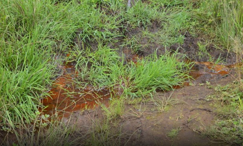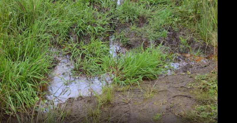 21. Lijkt mij ook kwelwater. Hier in de buurt ligt er op de meeste natte plaatsen waar het water stilstaat zo'n laagje. De eerste foto is zonder polarisatie-filter. De tweede met en dan zie je gelijk dat er veel ijzer in het slib achterblijft.