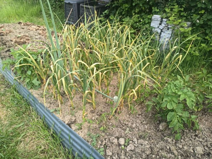 Heb de eerste aardappelen gerooid. Geen idee welk ras, want het waren "wilde" die ik vorig jaar over het hoofd heb gezien. En ik vermoed dat het uitgelopen gekochte aardappelen uit de winkel waren. Zijn beste knollen geworden.