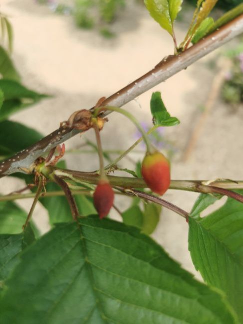 Hoi medetuinders, Wij hebben 2 kersenbomen op de tuin staan. Beiden zitten vol met kersen, maar ze verdrogen allemaal. De bomen krijgen 1x per week water en we controleren de grond 3x per week en zorgen ervoor dat ze niet teveel maar ook niet te weinig water krijgen. Ze groeien goed. Ze staan in kleigrond gemengd met bio moestuin aarde en ze zijn 4 jaar oud. 3 jaar terug heb ik ook 2 (kleinblijvende) kersenbomen in een pot in de tuin gehad. Precies hetzelfde probleem. Deze staan nu bij mijn schoonmoeder in de volle grond sinds 1.5 jaar. Ook daar weer volop kersen, maar ook deze verschrompelen. Iemand enig idee? De bomen op onze moestuin komen van een kersenboer. Het zijn de Varikse Zwarte en de Prunus Avium " Sam". Op aanraden van de bomenkweker hebben we deze 2 gekozen omdat deze elkaar goed zouden bestuiven.