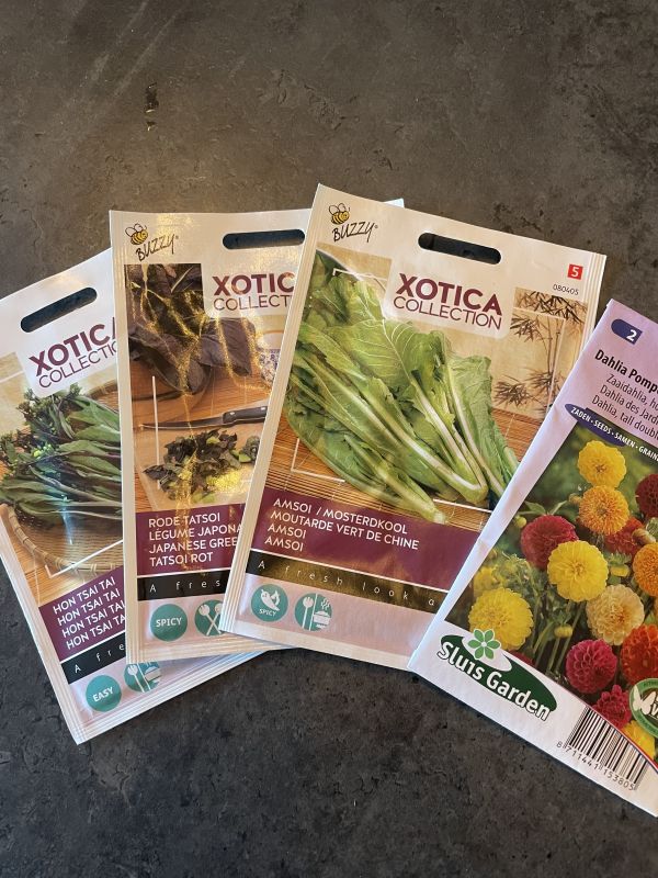 Hupelepupsoi zooi zaden om voor de herfst en voorjaar te zaaien in de kas. En wat knolselderijplantjes en een schattig bloemetje! 😊 happy Jo