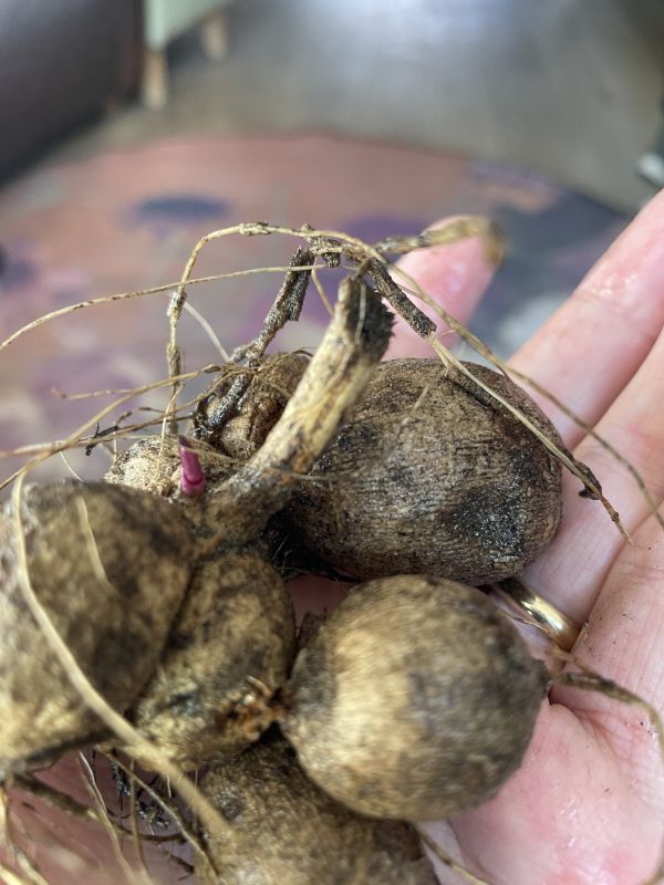 Nou, had ik al wat dahlias weg moeten doen vanwege rot, maar dacht dat de rest wel mee viel….weer nagekeken vandaag….kak! Snot of lege knollen. 😢een paar kunnen redden na verwijderen van rotte knollen..denk ik. Net bij de Aldi nog wat knollen kunnen vinden. Weer opnieuw beginnen dus. Zeker qua grootte. Die van de Aldi zijn zoooo klein nog! Komend seizoen blijven ze in de grond. Of ik ze nou thuis kwijt raak of op de tuin…🙄