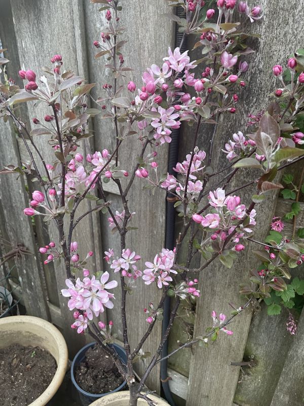De appletini gaat hard nu! Vorig jaar helemaal geen bloesem. Nu helemaal vol. Als nu de insecten hun best doen….😊🍎