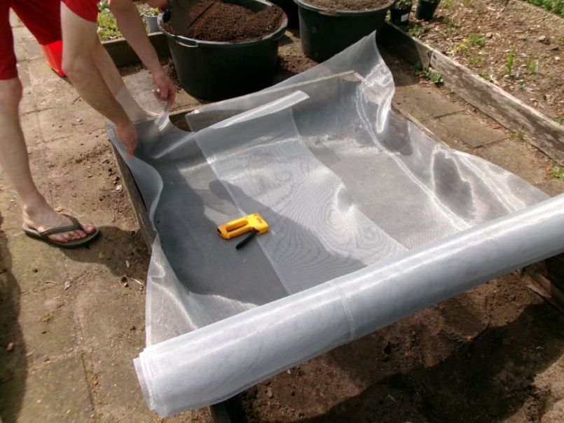 Ja dat hebben wij vorig jaar dus als test gedaan tegen de engerlingen. Bij ons is alleen niet helemaal duidelijk of die monsters van onderaf of de zijkanten komen, of ze er nu niet gewoon bovenin worden gedropt als eitjes en dan over een paar jaar voor gezeur gaan zorgen, enz. enz. Ik heb er alleen geen planten geteeld met echt wel stevige wortels zoals jouw tomaten. Ik had er wat sla en bietjes en koolrabi en radicchio staan. Ook hebben wij zelf een gaas-winkel dus dan kan je eens wat proberen. Wij hebben voor horrengaas gekozen, jouw plaagbeesten zijn iets groter dus muizengaas moet het ook wel doen...? Het is voor ons pas het 1e jaar zo, ik spit niet in mijn grond maar je moet er nu ook niet even een schep of vork in drukken omdat je per ongeluk denkt dat het een normaal vak is.- Wat heb je vandaag gekregen?