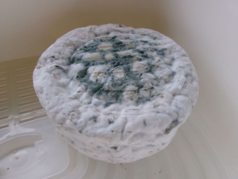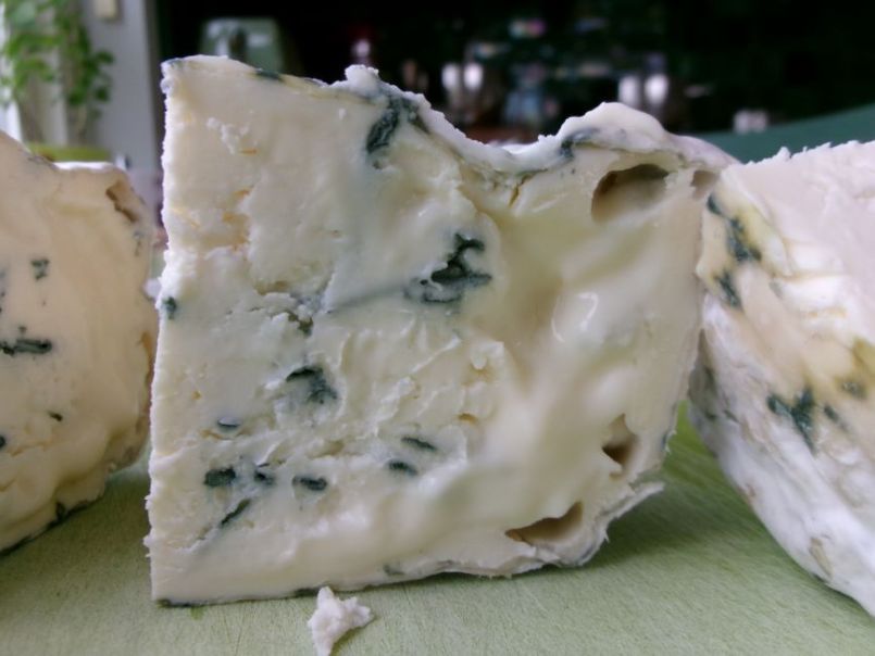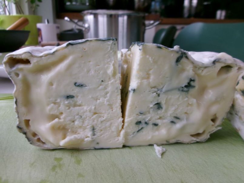 Ik had er deze keer ook iets witschimmel-poeder door gedaan, omdat het de vorige keer per ongeluk over was 'gewaaid' ofzo en dat gaf wel een lekker kaasje. Nu heeft het wit alleen het blauw een beetje overgenomen En het kaasje is wel aardig zacht geworden. Maar wel lekker!