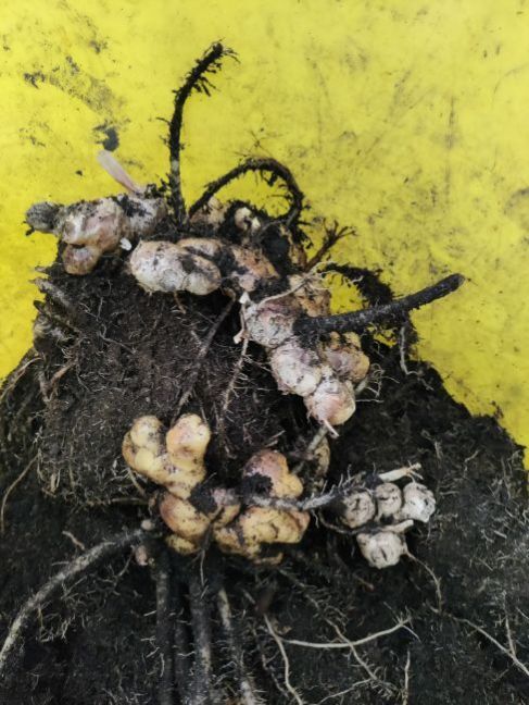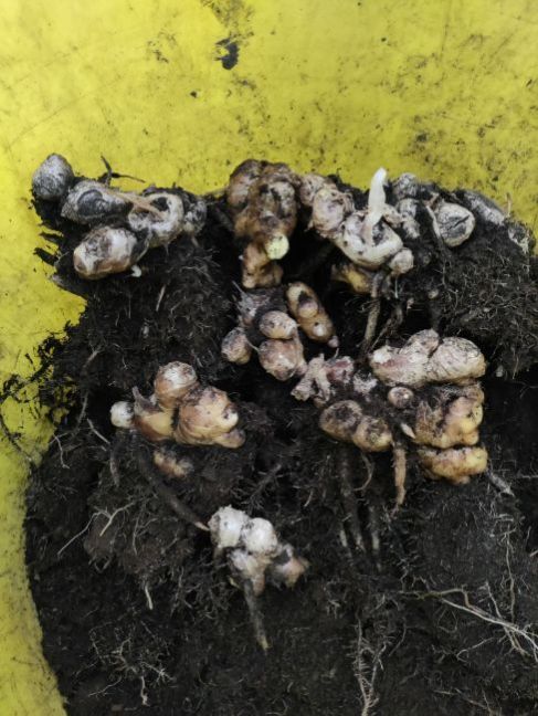 Ik heb dit weekend mijn twee potten gember geoogst in een gele ton en daarna een gedeelte terug opgepot voor komend seizoen. Ze staan een heel jaar in de veranda waar er zon is tot 14 uur.