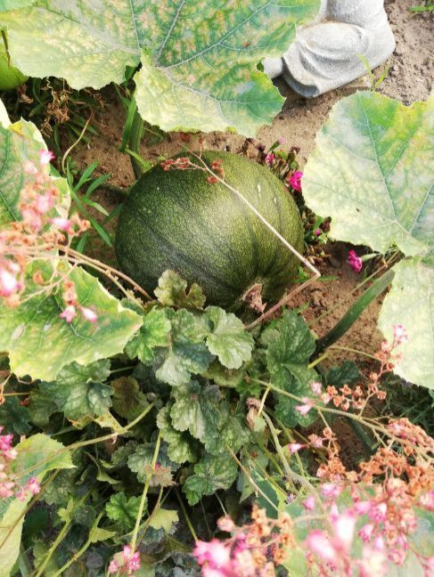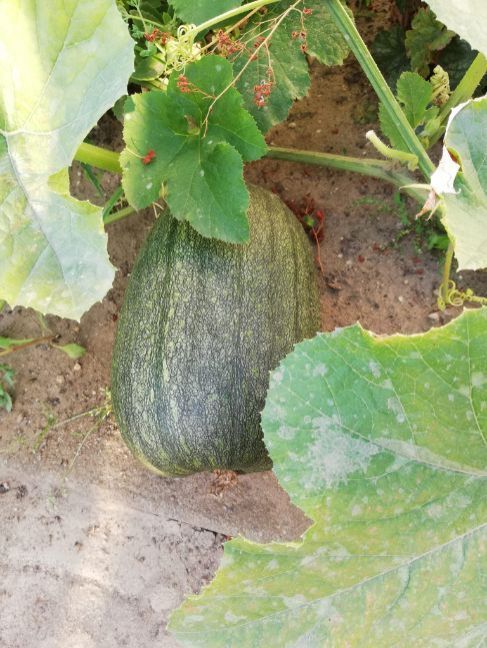 Andere jaren heeft hij deze planten ook gehad, en toen kreeg hij meteen oranje pompoenen.