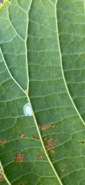2. Vorig jaar geplant, eind van de zomer begonnen de bladeren snel bruin te worden en af te sterven nog vóórdat de herfst begon Dit jaar goed opgelet of er iest gaande was en zagen we aanvankelijk de bladeren prachtig opkomen en groeien, tot voor een paar weekjes terug; plekjes die op gaatjes lijken maar bij nadere inspectie niet helemaal door en door. Er zitten ook witte dingetjes op. ( beestjes?) Wat is er loos en wat kunnen we ertegen doen?