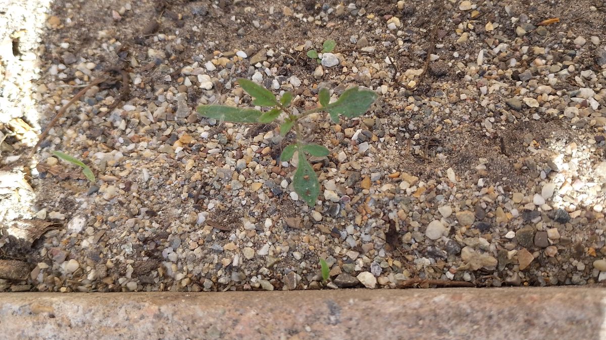 Het eerste bloemetje van de cucamelon bloeit. Gelukkig heeft de plant geen last gehad van de regen en hagel de afgelopen dagen. Ik heb de plant half april buiten gezet, op de gok. Ik had iets te vroeg gezaaid..