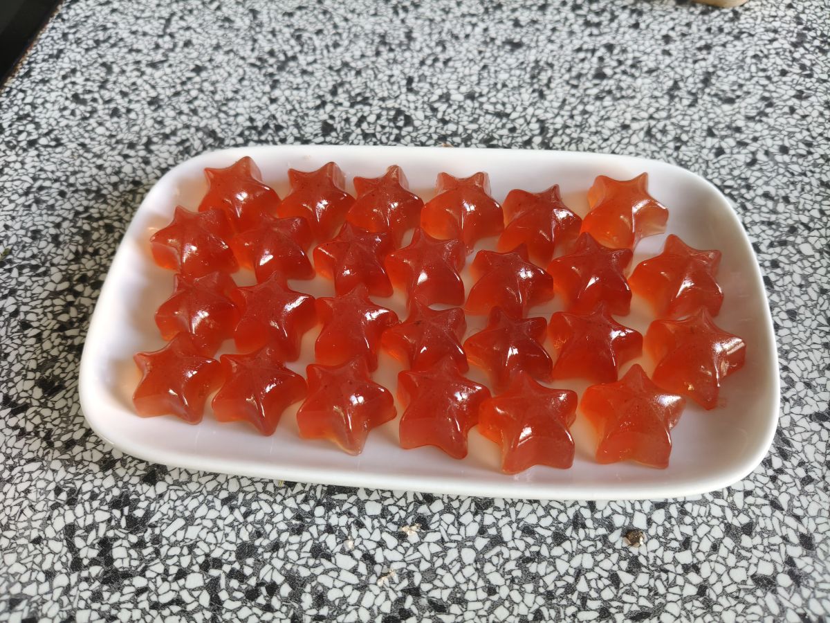 Ik heb ze gemaakt van rabarbersap, en het was een experiment. Best grappig om een keer te doen.