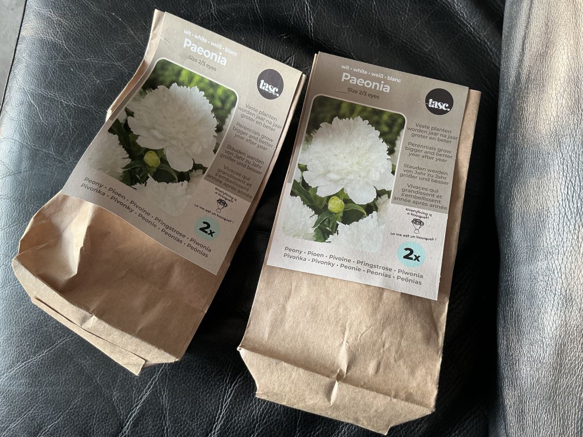 Vandaag naar de Action voor wat kweekdingen, o.a. die leuke kleine kweekbakjes die in de groene zaaibakken passen. Helaas pindakaas, al uitverkocht. Maar wat wat er wél was, waren wortelstokken van witte pioenrozen! Ik ben stapelgek op pioenrozen dus heb meteen twee zakjes meegenomen. Ik ben een blij mens.