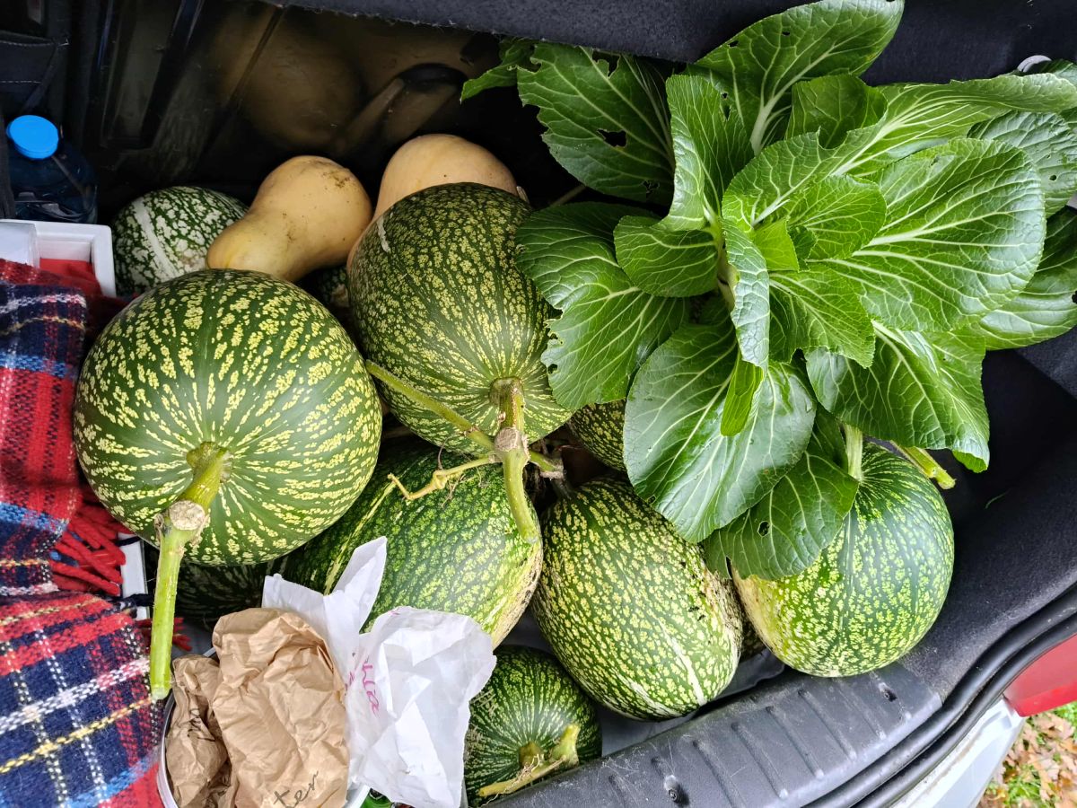 Even snel een uurtje naar de tuin omdat het komende week wel erg koud wordt aan de grond. De laatste chayotes, paprikas, pepers en pompoenen geoogst. Ook een deel van de planten weggehaald, rest komt later wel. Ook de yakon in de gaten houden nu, de blaadjes beginnen te verdorren en misschien komende week vorst aan de grond. Alles loopt nu wel op z’n eindje. Nu nadenken wat te doen met alle pompoenen, helaas blijkt de kruipruimte te vochtig. We hebben geen kelder.