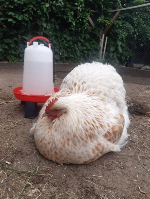 ach @Mellie superlief! En ik moet ook toegeven dat mijn gedachten ook veel bij de arme kip zijn, maar ze lijkt echt oprecht bij te trekken. Gisteren was echt best wel weer een goede dag voor haar. Mede omdat de zak met meelwormen was omgevallen heeft ze flink kunnen snoepen, weer de hele dag buiten rondgescharreld en beestjes en grasjes gepikt (en het terras ondergescheten met d'r zussen... das dan weer jammer). En gisteravond hadden we een hoosbui waar ze alle3 gewoon buiten bleven. Maar doorweekte kip of niet, toch weer scharrelen. Dus ja, ik word toch weer lichtjes positief in de tussentijd. Wel opvallend is dat nu geen van allen een ei legt. Ik weet niet wat ik ervan moet denken, maar solidair is het wel Ik heb wat bloedluisrolletjes opgehangen om te checken of het dat niet is. Ik heb de kippen al wel onderzocht en niks gevonden, maar het zou toch niet... Het was er wel warm genoeg voor...